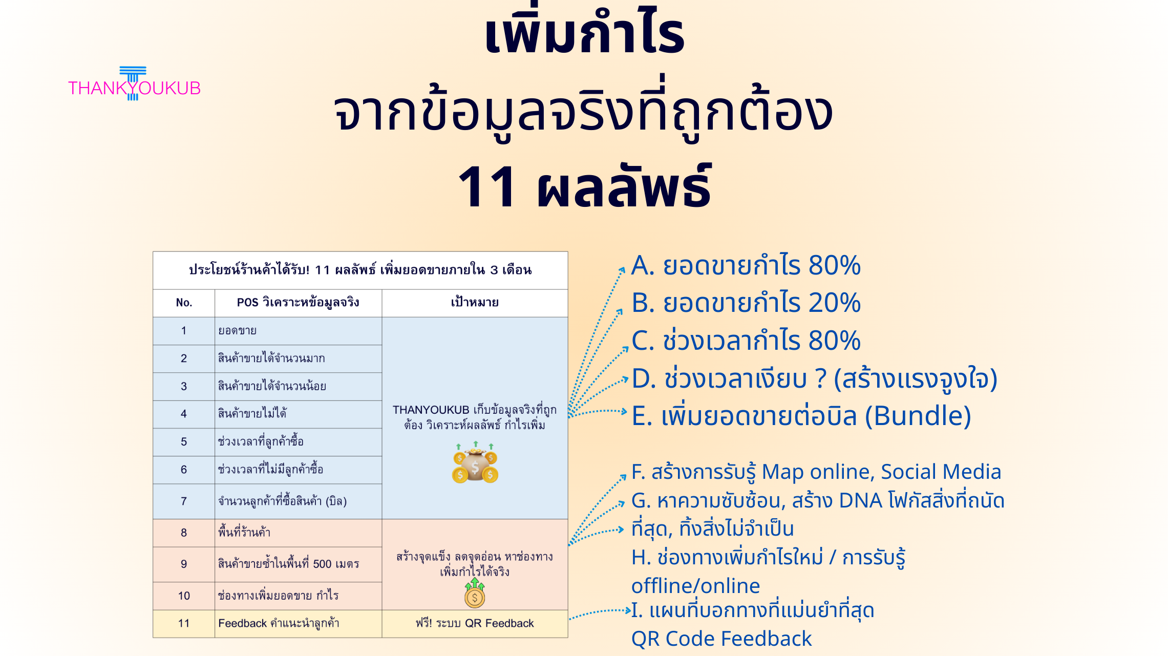 • ทั้งหมดนี้ Thankyoukub จัดการให้ร้านค้าทั้งหมด เพิ่มกำไรได้จริงภายใน 3 เดือน