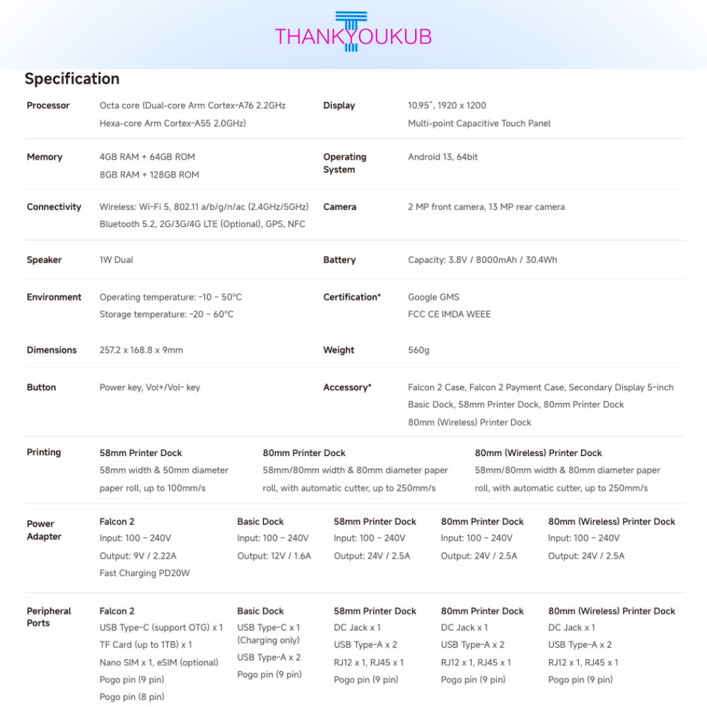 - รุ่น iMin Falcon 2 พร้อม Printer 80mm Dock